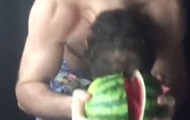 Тайсон Фьюри перед боем с Кличко головой расколол арбуз